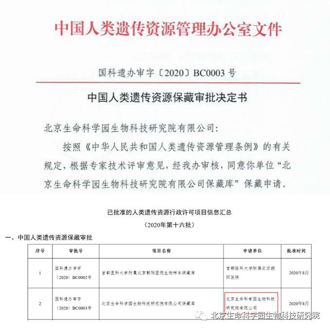 北京生命科學園生物科技研究院(以下簡稱“北京生物樣本資源庫”)(Biobank of Life Science Park,簡寫“BoLSP”)是一家由北京市科委和中關村生命科學園共同支持設立的第三方生物樣本庫公共服務平臺,秉承北京重大疾病臨床數據和樣本資源庫(以下簡稱“北京庫”)(Beijing Biobank of Clinical Resources,BBCR)十余年的發(fā)展成果,聚合眾多臨床樣本專家的專業(yè)共識,致力于在生命科學、生物醫(yī)藥研究領域發(fā)揮銜接樣本資源持有者與研究者的橋梁作用,解決生物樣本資源開發(fā)上下游信息不對稱、資源共享困難等問題。研究院在北京中關村生命科學園昌平園區建立了2000㎡生物樣本庫,最大存儲規(guī)模達1000萬份。研究院遵循CNAS-CL10:2020《生物樣本庫質量和能力認可準則》,同時結合北京庫過去十年的工作經驗與教訓,建立了一套完善的生物樣本保藏質量管理體系,從人、機、料、法、環(huán)、控多個角度,實現生物樣本保藏過程的全面質量控制,先后獲得國家科技部頒發(fā)的人類遺傳資源保藏行政許可證書和中國合格評定國家認可委員會(China National Accreditation Service for Conformity Assessment,CNAS)頒發(fā)的“CNAS認可證書”。
